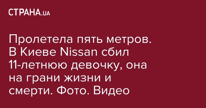 Пролетела пять метров. В Киеве Nissan сбил 11-летнюю девочку, она на грани жизни и смерти. Фото. Видео