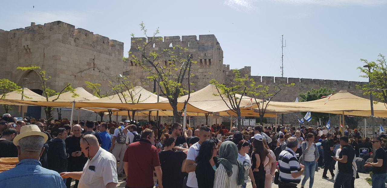 13:00 Перед Яффскими воротами собралось несколько тысяч верующих. Здесь центральный вход к Храму гроба Господня, но вход к нему полиция закрыла из-за огромного количества людей внутри храма и на близлежащей территории.