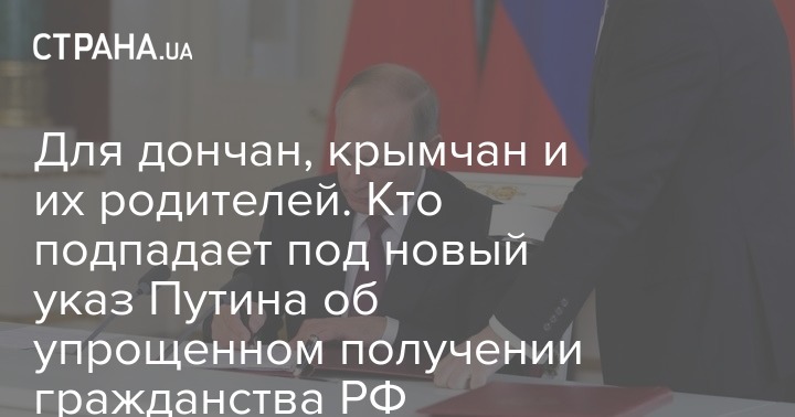 Потом он заявил, что намерен предоставить возможность всем украинцам стать гражданами РФ по упрощенной процедуре. Новый указ Путина всех украинцев не касается, но действительно расширяет категории "льготных" получателей российского гражданства.