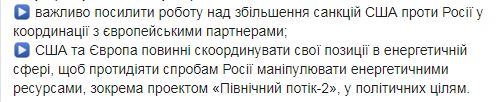 - важно усилить работу над увеличением санкций США против России в координации с европейскими партнерами;