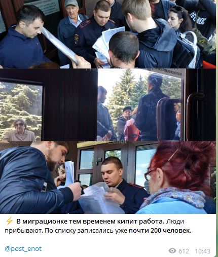 Telegram-канал Post Enot позднее сообщил, что "люди прибывают" и "по списку записались уже почти 200 человек".
