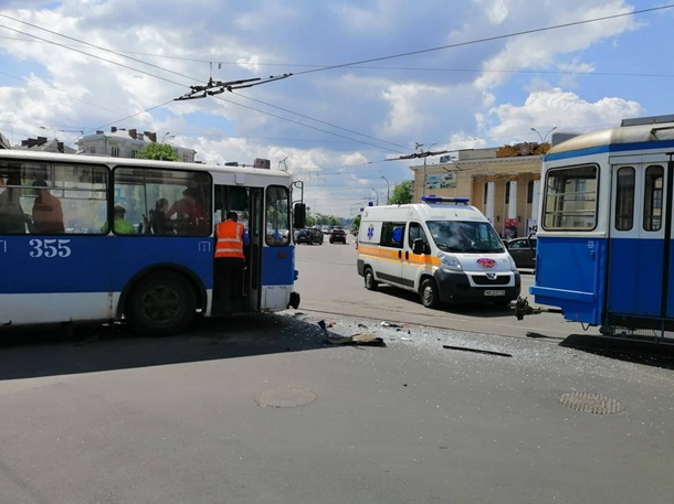 "Троллейбус ехал по маршруту №5 со стороны железнодорожного вокзала, а трамвай 6-го маршрута – на вокзал. В результате ДТП пострадали 12 пассажиров обоих транспортных средств", - рассказал источник издания.