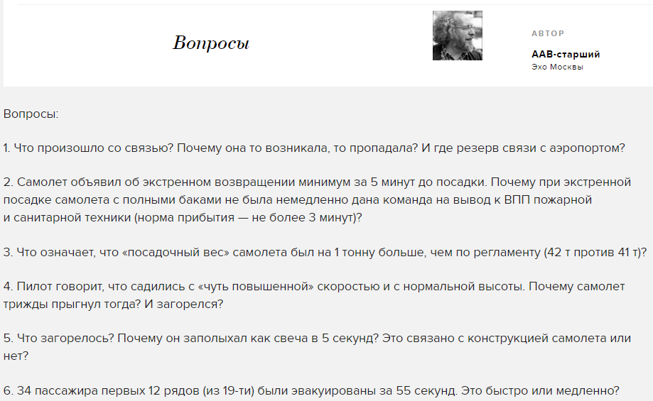 10:14 Главред "Эха Москвы" Алексей Венедиктов в своем блоге задал шесть технических вопросов, которые возникли после трагедии.