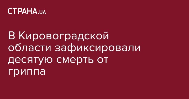 В Кировоградской области зафиксировали десятую смерть от гриппа - умерла 62-летняя жительница Кропивницкого. Об этом сообщили в областном лабораторном центре, передает УНН.