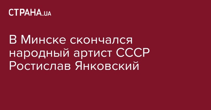 В Минске в воскресенье, 26 июня, ушел из жизни народный артист СССР, артист Национального академического драматического театра имени Максима Горького одессит Ростислав Янковский, передает Интерфакс-Украина.
