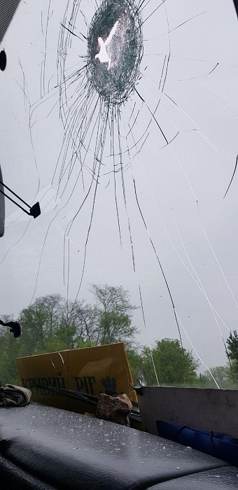 "Установлено, что во время движения двух автобусов из г. Кривой Рог в г. Днепр неизвестные лица начали бросать по транспортным средствам камни. В результате были повреждены лобовые и задние стекла", - сообщили в полиции.