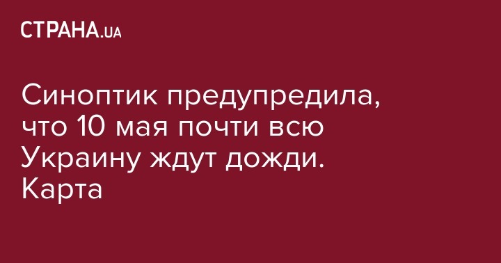 Синоптик предупредила, что 10 мая почти всю Украину ждут дожди. Карта