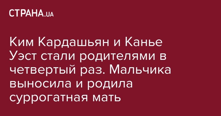 Американский певец Канье Уэст и светская львица Ким Кардашьян стали родителями в четвертый раз. Об этом Кардашьян сообщила на своей странице в Twitter 10 мая.