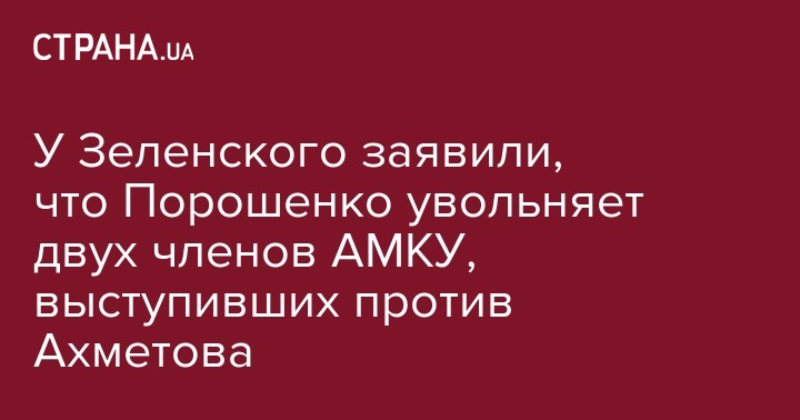 У Зеленского заявили, что Порошенко увольняет двух членов АМКУ, выступивших против Ахметова