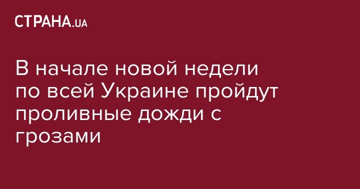 В начале новой недели по всей Украине пройдут проливные дожди с грозами