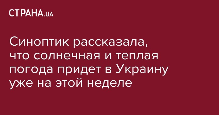 Синоптик рассказала, что солнечная и теплая погода придет в Украину уже на этой неделе