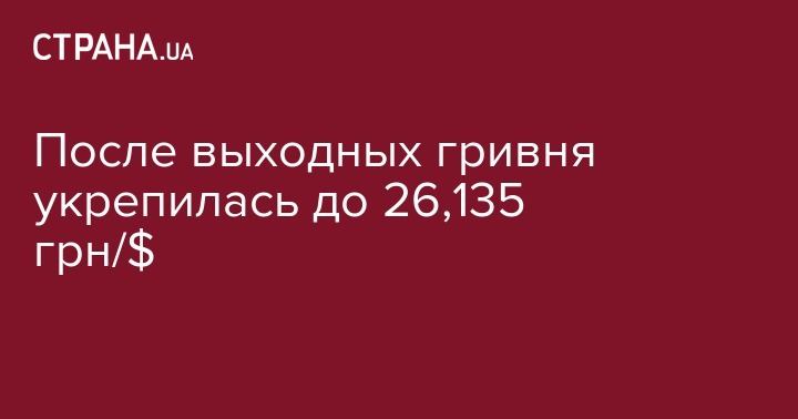 Курс украинской валюты на межбанке в понедельник, 13 мая, поднялся до 26,135 грн/$1 с 26,175 грн/$ в предыдущий рабочий день. Об этом сообщили дилеры коммерческих банков, передает Интерфакс-Украина
