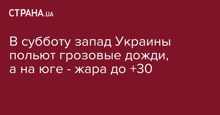 В субботу, 18 мая, кратковременные грозовые дожди накроют западную Украну, а также  Винницкую и Одесскую области. Синоптики прогнозируют местами шквалы 15-20 м/с. НА остальной территории страны ожидается солнечная погода без осадков. Об этом сообщает Укргидрометцентр.