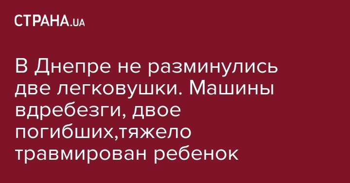 В Днепре не разминулись две легковушки. Машины вдребезги, двое погибших,тяжело травмирован ребенок
