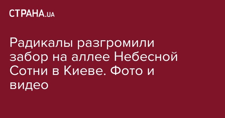 Радикалы разгромили забор на аллее Небесной Сотни в Киеве. Фото и видео