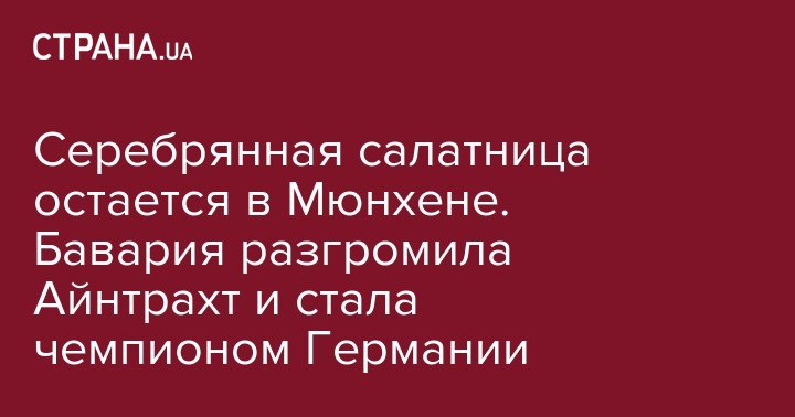 Сегодня, 18 мая, в Германии завершился чемпионат страны. В последнем туре Бундеслиги Бавария из Мюнхена обыграла на своем поле со счетом 5:1 Айнтрахт (Франкфурт-на-Майне) и сохранила у себя Серебрянную салатницу, главный трофей национального первенства.