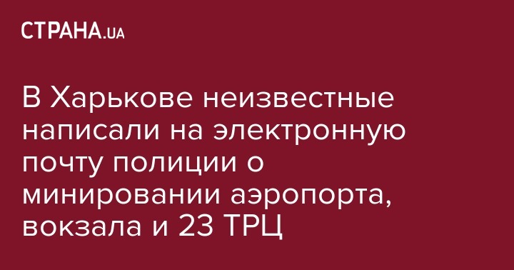 В четверг, 23 мая, в Харькове неизвестные сообщили полиции о минировании 23 ТРЦ, аэропорта и железнодорожного вокзала. Об этом сообщает Отдел коммуникации ГУ НП в Харьковской области