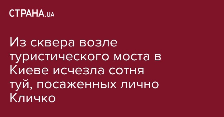 Из киевского сквера возле памятника Магдебургскому праву неизвестные украли около сотни туй, высаженных там три года назад лично мэром столицы Владимиром Кличко. Об этом на своей странице в Facebook сообщил IT-бизнесмен Александр Кардаков, который подарил городу эти растения.