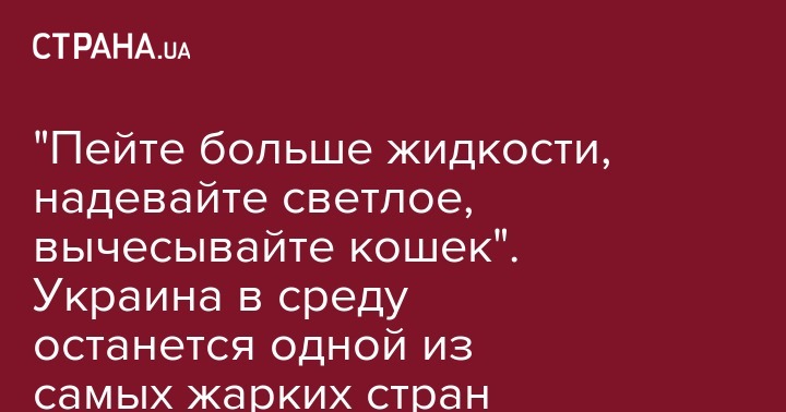 "Пейте больше жидкости, надевайте светлое, вычесывайте кошек". Украина в среду останется одной из самых жарких стран Европы