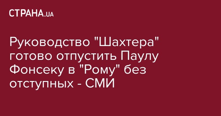 Руководство "Шахтера" готово расстаться с наставником команды Паулу Фонсекой и отпустить его в римскую "Рому" бесплатно. Об этом сообщает FootballUA.