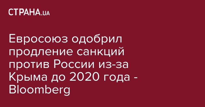 Постпреды государств Европейского союза решили продлить санкционные ограничения против России из-за аннексии Крыма, передает Bloomberg со ссылкой на знакомый с ситуацией источник.