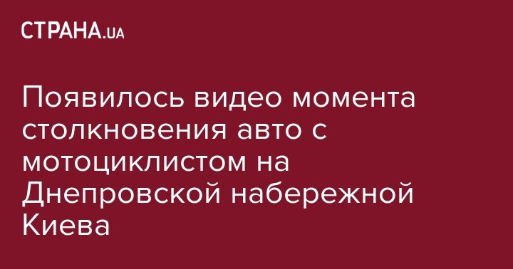 В четверг, 6 июня, на Днепровской набережной Киева автомобиль Volvo столкнулся с мотоциклом. В результате ДТП пострадал мотоциклист. Видео столкновения публикует Киев оперативный в Facebook.