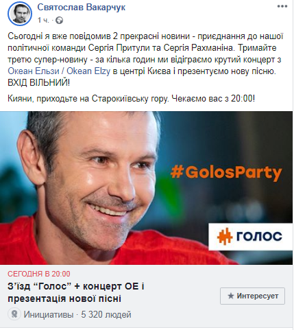 Скриншот: Facebook/ Cвятослав Вакарчук