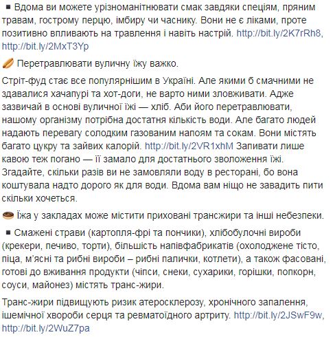 Супрун признала, что уличная еда - стрит-фуд - становится все популярнее в Украине. "Но какими бы вкусными ни казались хачапури и хот-доги, не стоит ими злоупотреблять. Ведь обычно в основе уличной еды - хлеб. Чтобы его переваривать, нашему организму требуется достаточное количество воды. Но многие люди предпочитают - сладкии газированным напиткам и сокам. Они содержат много сахара и лишних калорий. Запивать только кофе тоже плохо - его мало для достаточного увлажнения пищи", - заметила она