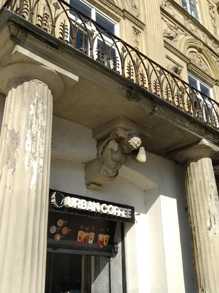 Во Львове возле уличной кофейни женщина едва не пострадала от падения на нее отколовшейся от стены дома бетонной конструкции. Об этом сообщили очевидцы в соцсети. Уточняется, что от здания отвалилась часть консоли в виде скульптуры атланта.