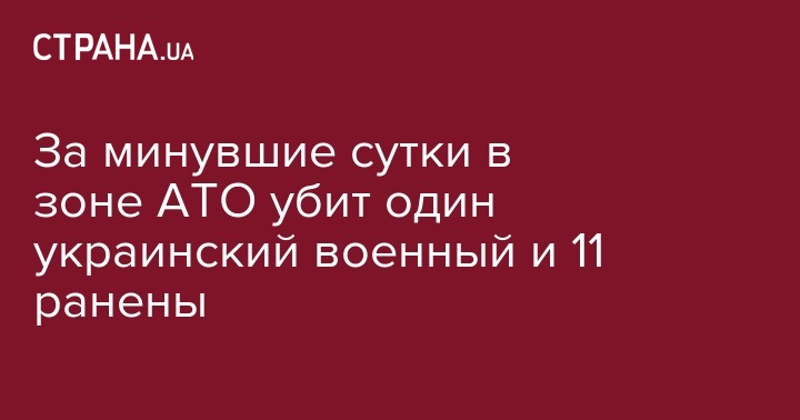 За минувшие сутки на Донбассе погиб украинский военный, еще 11 бойцов получили ранения. Такие данные 30 июня озвучил пресс-секретарь администрации президента по вопросам АТО Андрей Лысенко, передает УНИАН.
