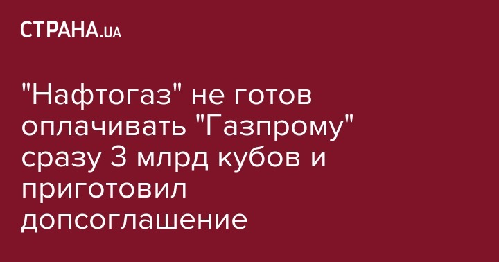 "Нафтогаз" не готов оплачивать "Газпрому" сразу 3 млрд кубов и приготовил допсоглашение