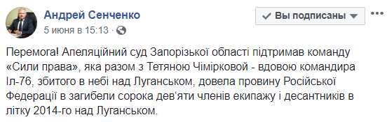 А неделю назад Апелляционный суд Запорожской области признал вину России в крушении самолета.