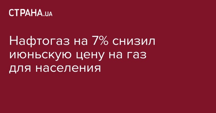 Нафтогаз на 7% снизил июньскую цену на газ для населения