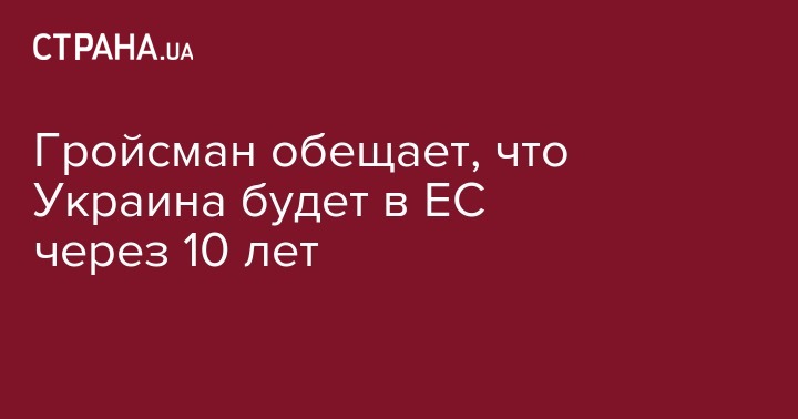 Премьер-министр Владимир Гройсман заявил, что Украина станет членом Евросоюза через десять лет, передает УНН