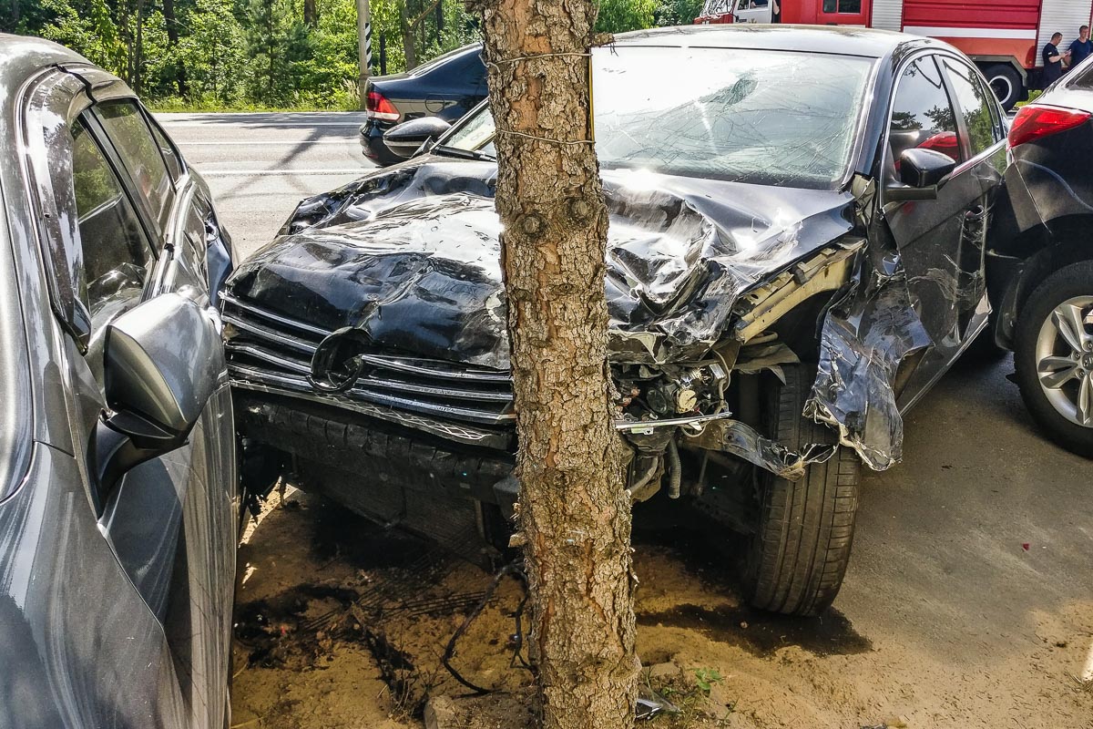 ДТП произошло около 14:30. По предварительным данным, автомобили Daewoo Lanos и Volkswagen Passat двигались по Столичному шоссе в направлении выезда из Киева. В районе Конча-Заспы мужчина за рулем Volkswagen на большой скорости врезался в такси Lanos сзади. От удара Daewoo откинуло на несколько метров и развернуло на дороге, а Passat влетел в парковку отельно-ресторанного комплекса KNZS, где зацепил автомобили Honda Accord и Hyundai ix35.