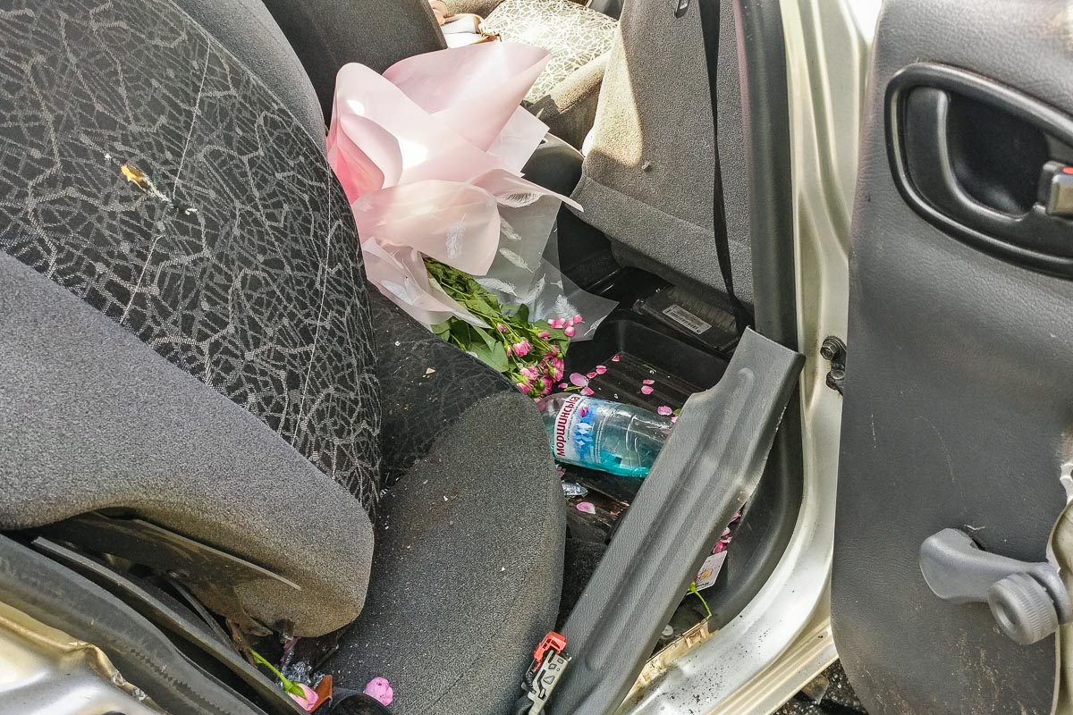 В результате аварии погибла девушка-пассажир такси. Из искореженного автомобиля ее вырезали спасатели ГосЧС. Погибшей было на вид около 25 лет. После жуткой аварии у нее еще около 10 минут прощупывался пульс, однако от полученных травм она скончалась на месте происшествия. По словам очевидцев погибшая ехала в качестве приглашенной гостьи на свадьбу.