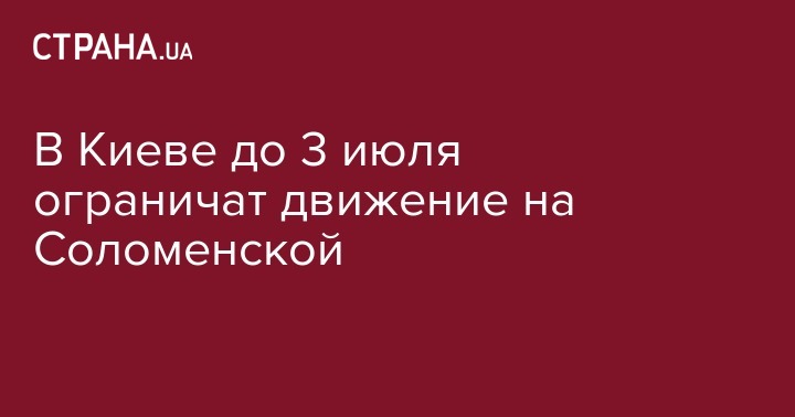 Начиная с сегодняшнего дня, 1 июля и, вплоть до 3 июля из-за ремонтных работ на улице Соломенской будет частично ограничено движение. Об этом предупреждает пресс-служба КГГА.