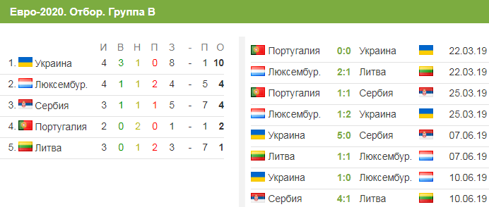 Таким образом наша команда сохранила все свои очки и занимает первое место в группе В в отборе на Евро-2020. В активе нашей команды 10 баллов.