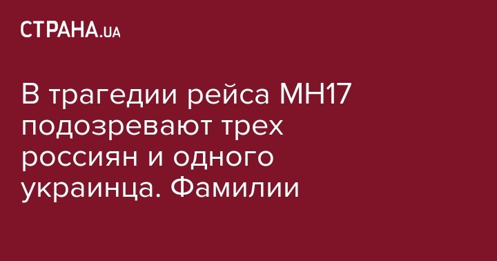 В среду, 19 июня, в Нидерландах совместная следственная группа (ССГ) назвала имена четырех подозреваемых в гибели рейса МН17 малазийских авиалиний в небе над Украиной 17 июля 2014 года. Об этом пишет "Интерфакс-Украина"