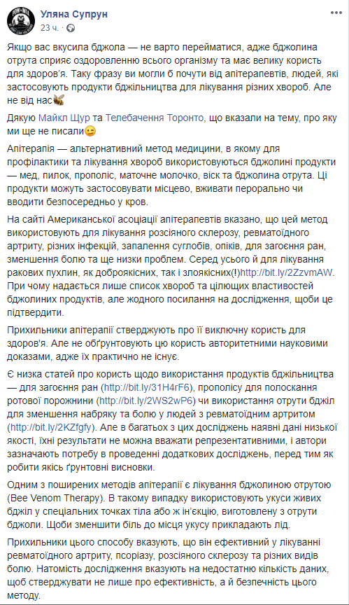 Скриншот: Facebook/Ульяна Супрун