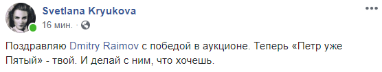 Ранее сообщалось, что на Facebook-странице Светланы Крюковой открылись торги за новую картину "Золотая шаурма".