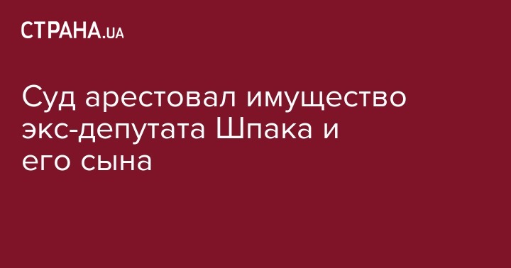 По решению суда арестовано имущество бывшего народного депутата четвертого и шестого созывов Василия Шпака и его сына Николая Шпака, бывшего главу правления НАК "Украгролизинг", которых подозревают в хищении 100 млн грн. государственных средств. Об этом заявил руководитель специальной антикоррупционной прокуратуры Назар Холодницкий, передает Интерфакс-Украина.