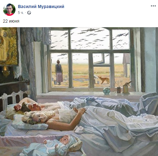 Так, журналист Василий Муравницкий опубликовал у себя на странице в Facebook картину Валентина Папко "Даже не снилось. 22 июня 1941".