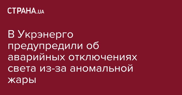 В Укрэнерго предупредили об аварийных отключениях света из-за аномальной жары