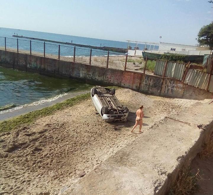 В Одессе сегодня на пляж с прибрежного склона рухнула иномарка.