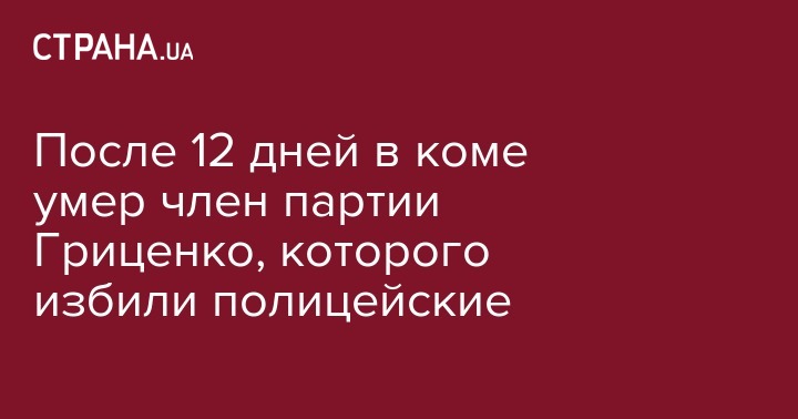 После 12 дней в коме умер член партии Гриценко, которого избили полицейские