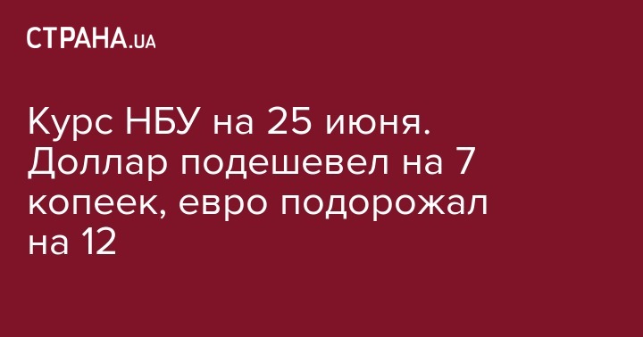 Курс НБУ для основных валют на 25 июня:
