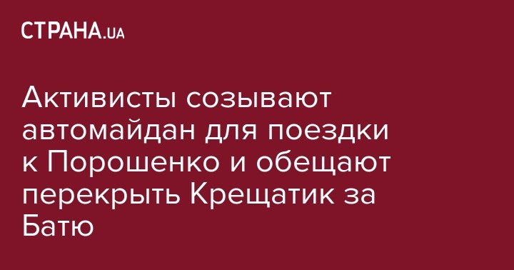 Активисты созывают автомайдан для поездки к Порошенко и обещают перекрыть Крещатик за Батю