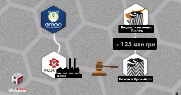 Кипрская компания заявила, что занимала владельцам соепереробного завода более 125 млн гривен - и хочет их получить. Суд встал на сторону оффшорки и вернул уже перепроданный завод первому владельцу - фирме-банкроту братьев Сегаль "Каховка Пром-Агро", а "Надра" остался без возвращенного кредита и завода.