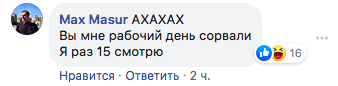 "Ахаха. Вы мне рабочий день сорвали. Я раз 15 смотрю".